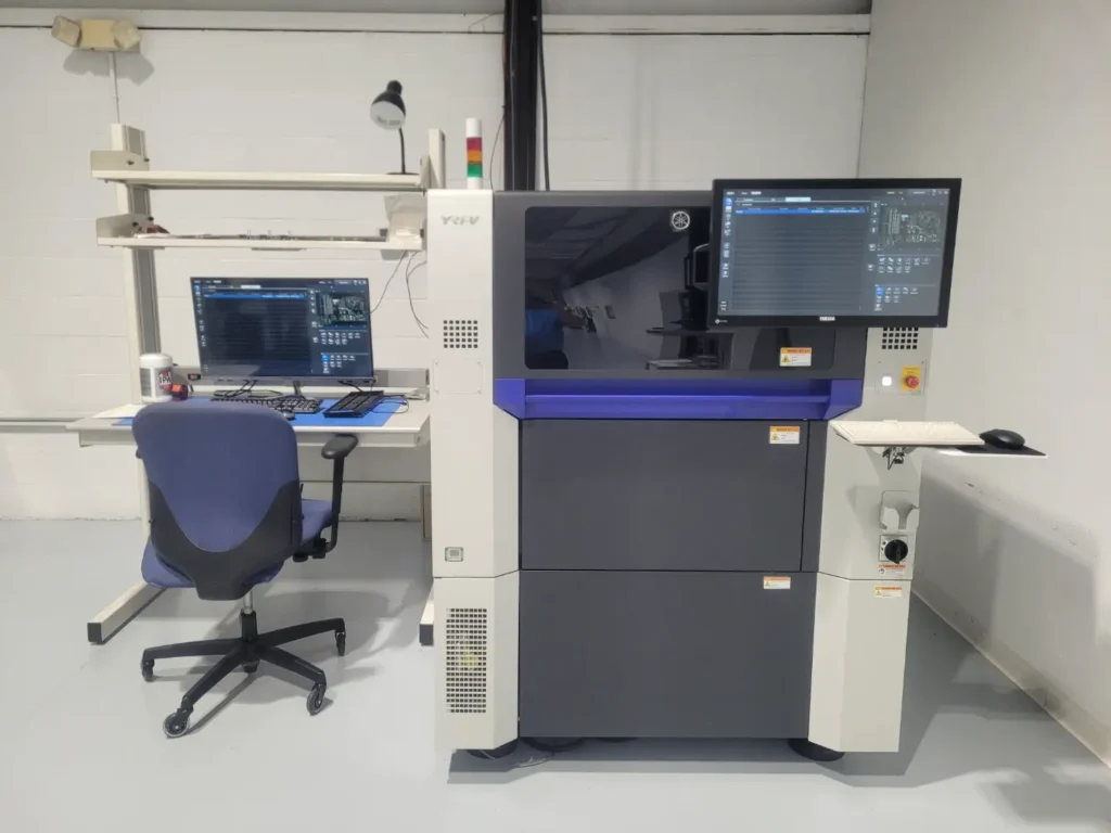 This advanced optical inspection system examines assemblies on a microscopic scale, and offers high-speed, high-accuracy 3D inspections more rapidly and accurately than visual inspections. Defect recognition is retained and forwarded “upstream” to identify and analyze the origin of errors.